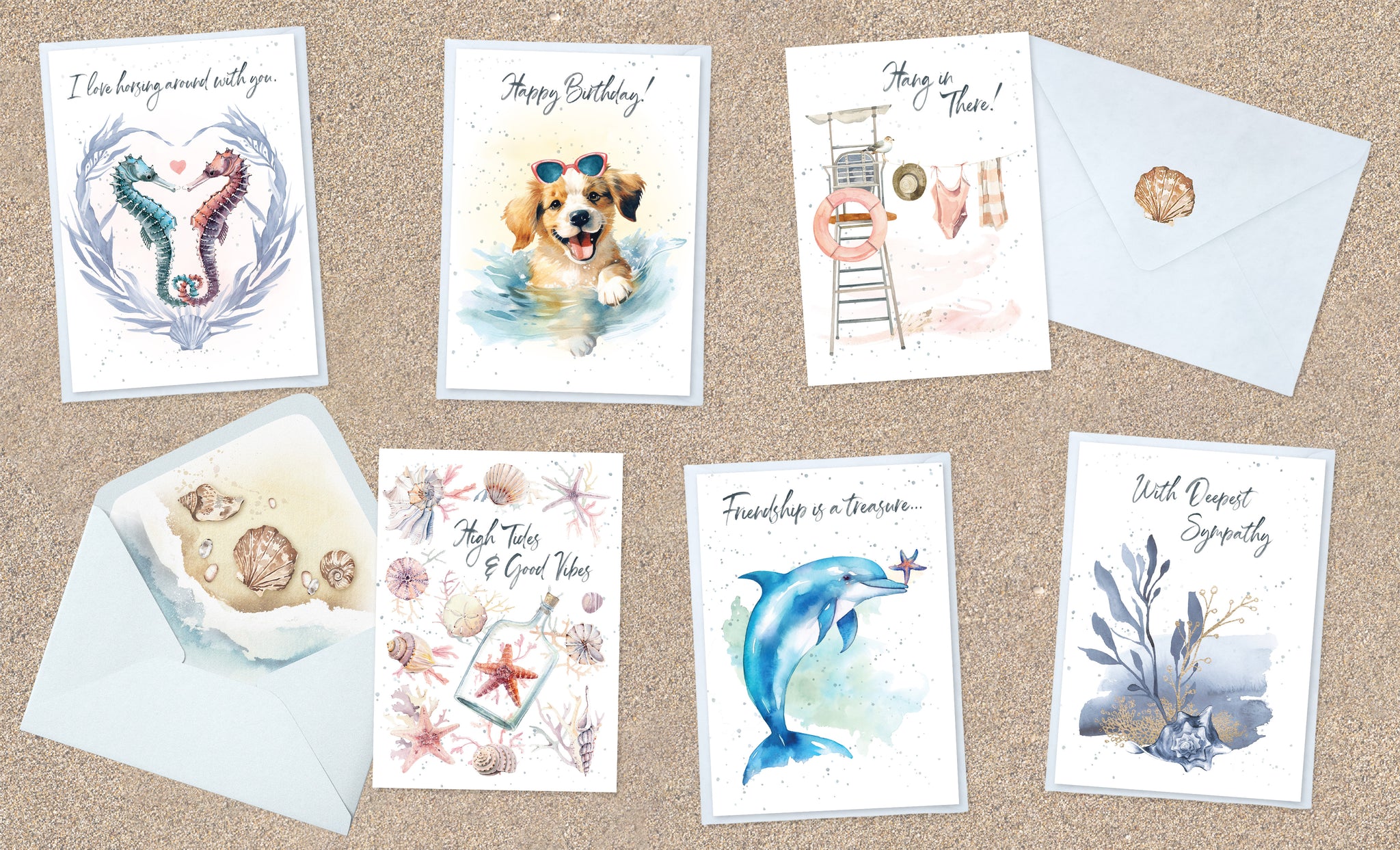 Share the joy and beauty of Hopper Studios Greetings cards with your friends and family! Each six pack could include any 6 of the Coastal cards displayed in the product photos.